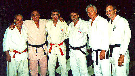 Here is a photo from the Ventura County Star showing the Judo demonstration at the Oxnard Buddhist Temple Obon Festival. The photo below shows a big ura nage throw during the demonstration. ![]() Judo class at Oxnard Buddhist Temple on May 10, 2005. Goodwill Practice with Japanese Self Defense Forces. The Encino Judo Club has a long history of drawing on experts to provide advanced instruction. This photo (below) shows some of the instructors at an Encino Judo Club clinic about 40 years ago including (from left to right) Harold Sharp (9th dan), "Judo" Gene Lebell (9th dan), Phil Porter (9th dan), and three instructors from the Encino Judo Club -- Toney Raven, Bill Nauta, and Neil Ohlenkamp. ![]() |